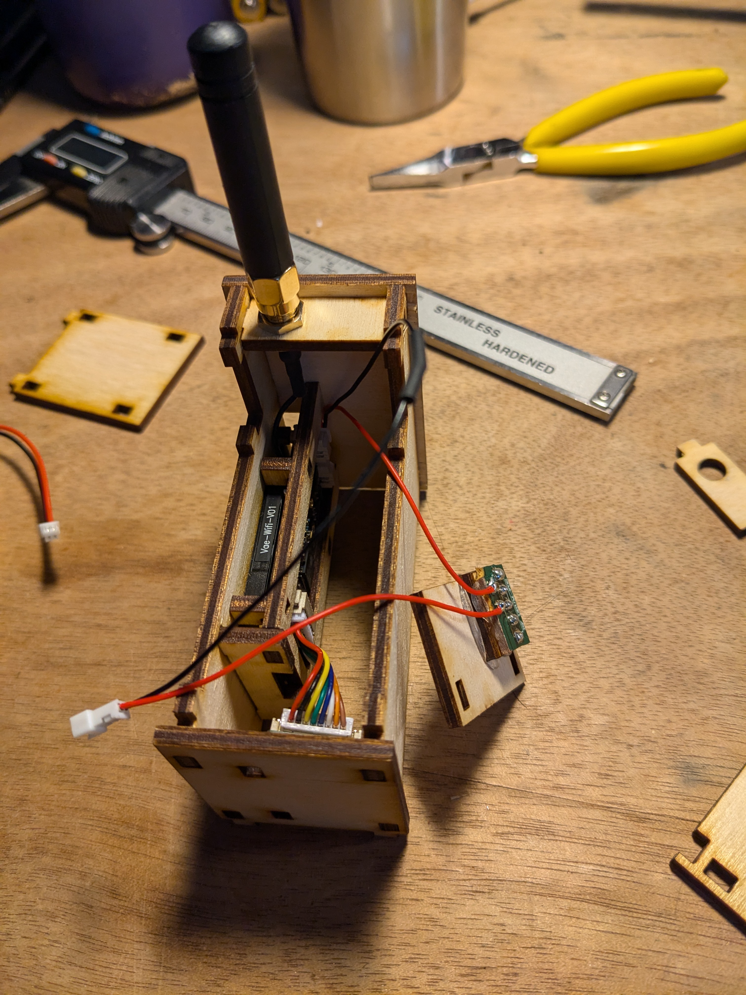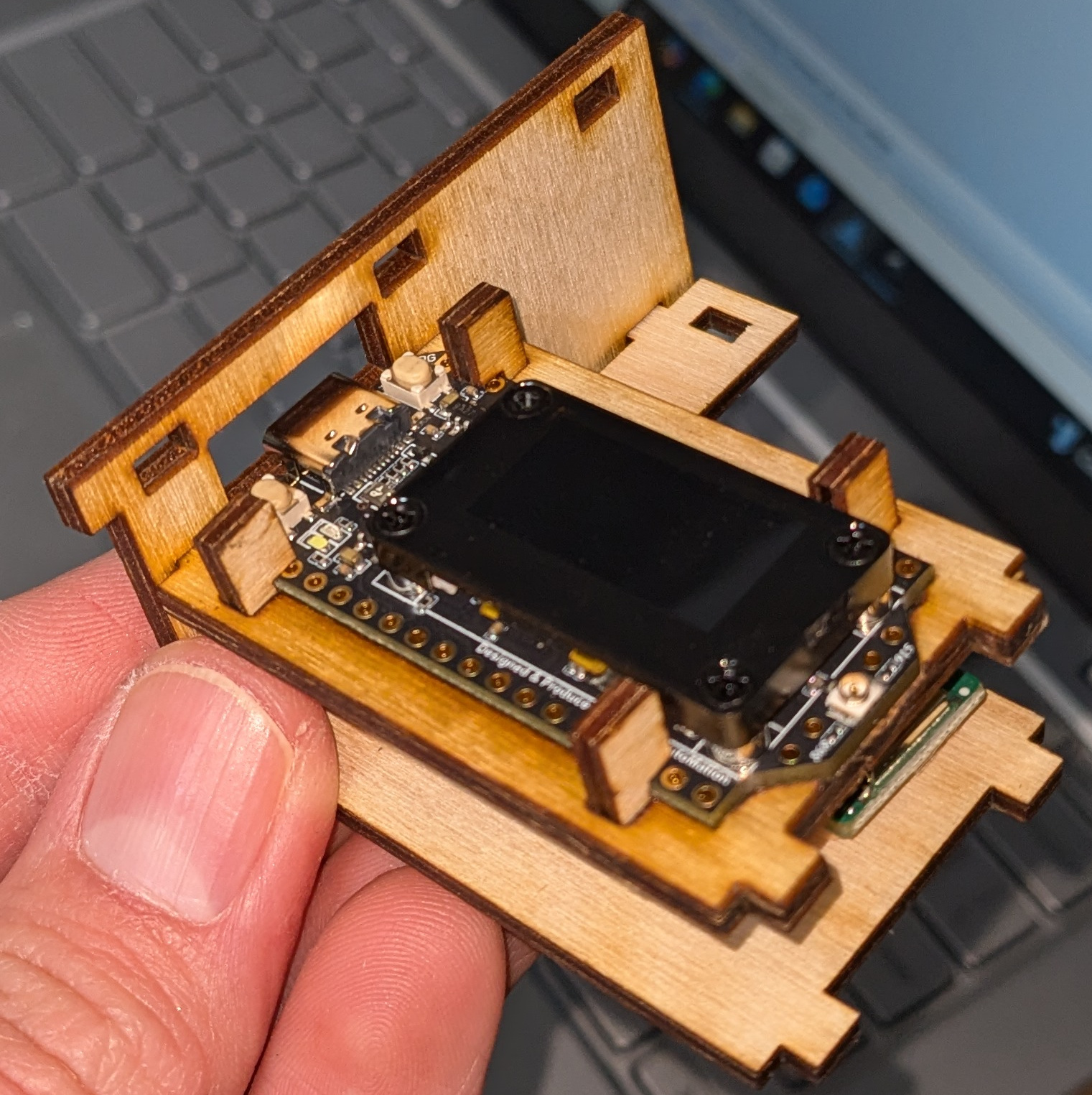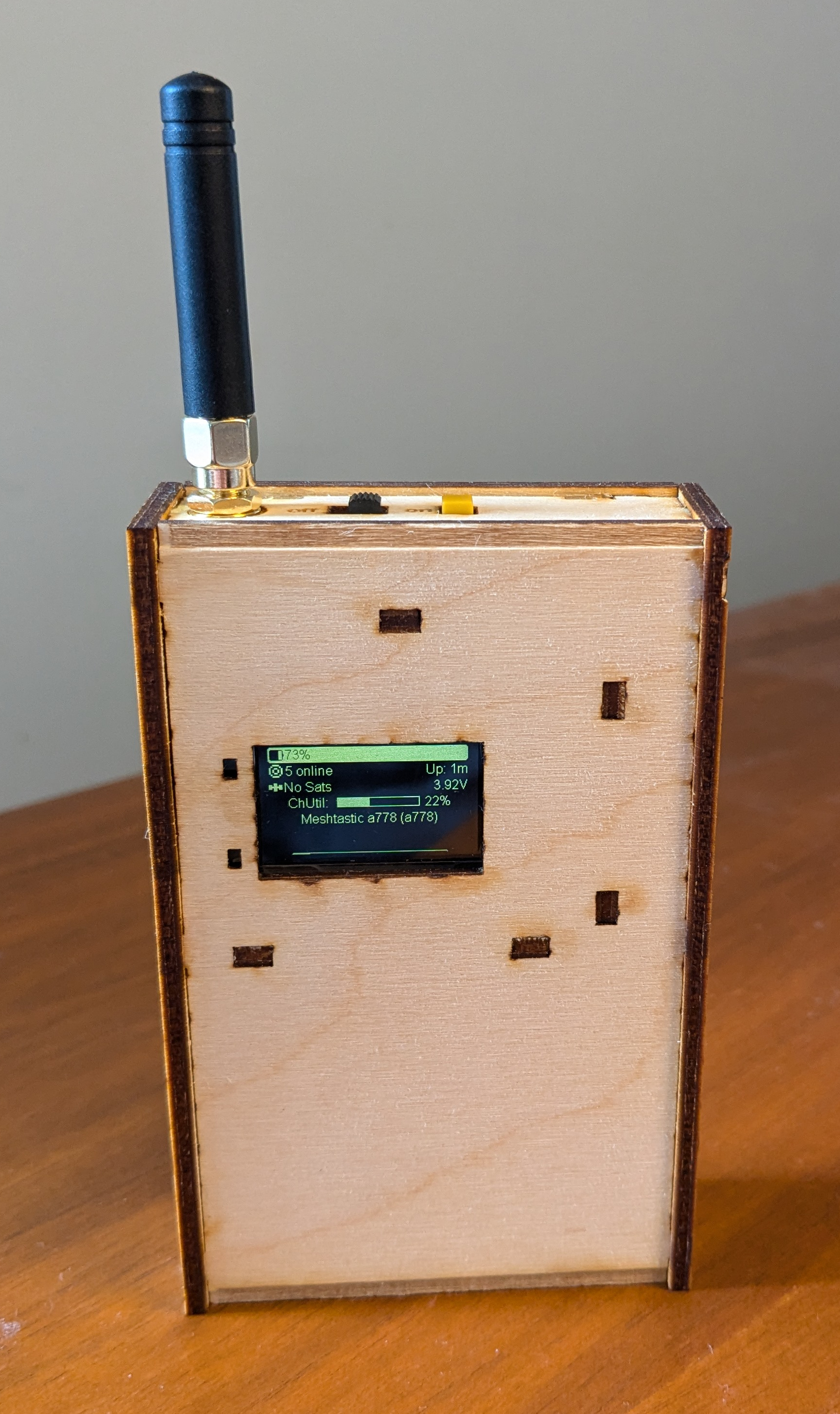 Custom laser-cut wood Meshtastic radio enclosures.